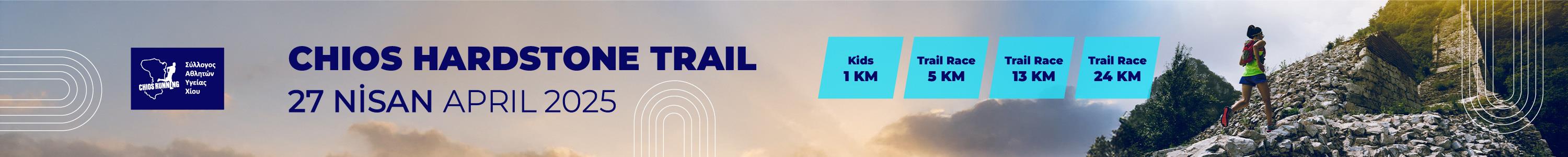 Chios Hardstone Trail etkinliği 5K, 13K, 24K parkurlarından oluşmakta olup, ayrıca 1K çocuk koşusu bulunmaktadır. 27 Nisan 2025 tarihinde 5'incisi yapılacak olan bu etkinlikte yerini almak için hemen kaydol!